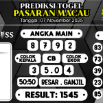 Prediksi Boss Togel Macau Jumat 07 November 2025