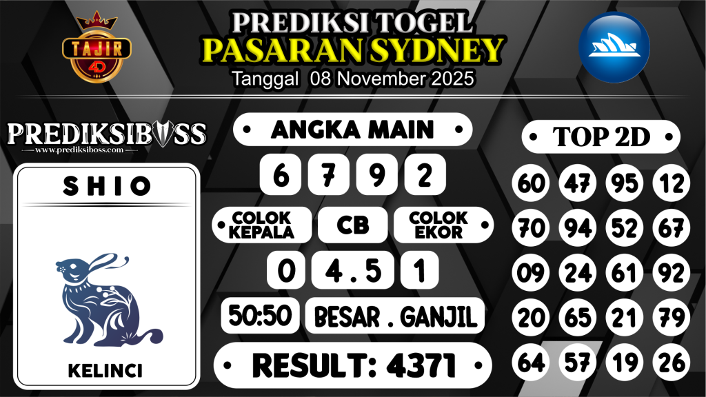 Prediksi Boss Togel Sidney Sabtu 08 November 2025